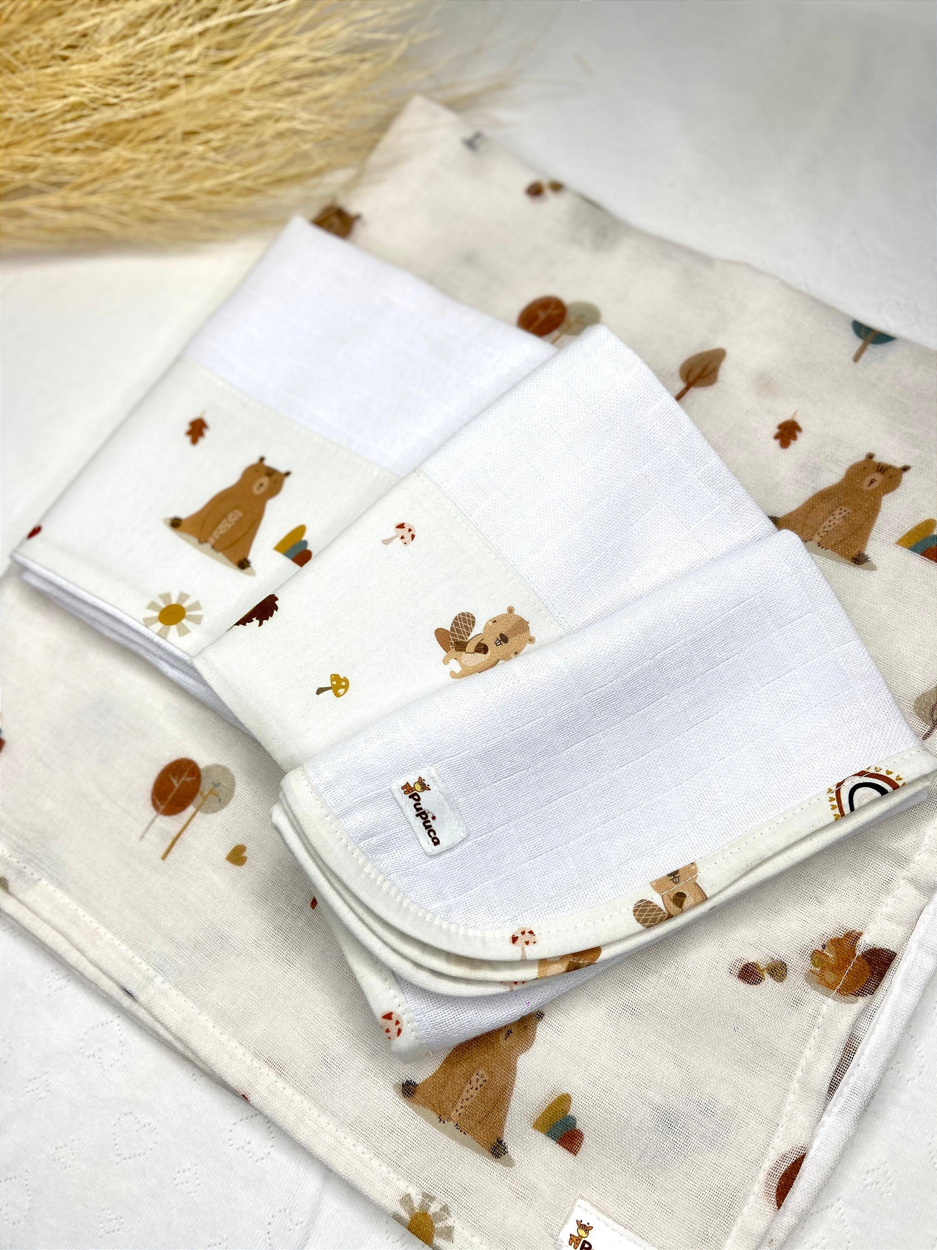 Nossas fraldinhas são confeccionadas em tecido fralda 100% algodão, super macias e com tecnologia anti pilling (que previne bolinhas após as lavagens).