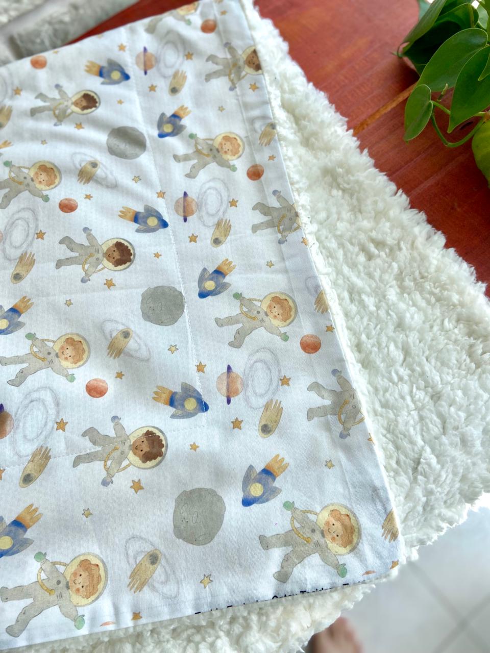 De um lado, o toque leve e respirável da tricoline 100% algodão. Do outro, a maciez e o aconchego do tecido sherpa 100% poliéster, que mantém o bebê quentinho sem pesar. Uma combinação equilibrada entre suavidade e proteção, ideal para todas as estações.